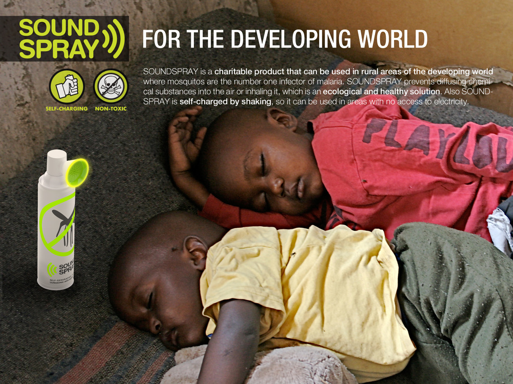 몸에 해로운 살충제 말고 소리로 모기를 쫓을 수 있다면 어떨까요? 개발도상국에서 발생하고 있는 질병 중 모기를 통한 말라리아 감염, 그로 인한 사망이 가장 심각한 문제라고 해요. 특히 5세 미만 신생아의 생명이 심각하게 위협받고 있지요. 배상민 교수와 ID+IM 연구원들은 "어떻게 하면 한 번의 공급으로 지속가능성을 가지는 모기 퇴치제를 만들어 공급할 수 있을까?"에 목표를 두고 '사운드 스프레이(Sound Spray)'라는 초음파 모기 퇴치기기를 개발했다고 하네요. 이 기기의 가장 큰 특징은 첫째, 소모품이 아닌 반영구적으로 쓸 수 있다는 것. 둘째, 호흡기 건강을 해치는 화학적 성분이 아닌 초음파를 분사시키기 때문에 건강과 환경을 동시에 잡을 수 있다는 것. 셋째, 평소 사람들이 알고 있는 살충제 스프레이와 형태 및 사용법이 같기 때문에 따로 학습하지 않아도 남녀노소 누구나 쉽게 쓸 수 있다는 것입니다.