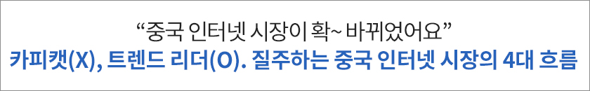 요즘 중국 인터넷 시장이 심상치 않다고 합니다. 이제 더 이상 '카피캣(모방꾼)'이라는 불명예는 NO! 오히려 중국이 카피캣의 대상으로 떠오르고 있다는데요, 대체 무슨 일이 벌어지고 있는 걸까요? 눈 깜짝할 사이에 확! 바뀐 중국의 인터넷 시장. '중국 인터넷 보고서 2019'를 통해 현재 중국 인터넷 사용 현황과 트렌드 변화 등 가장 눈에 띄는 4대 흐름을 살펴보겠습니다.