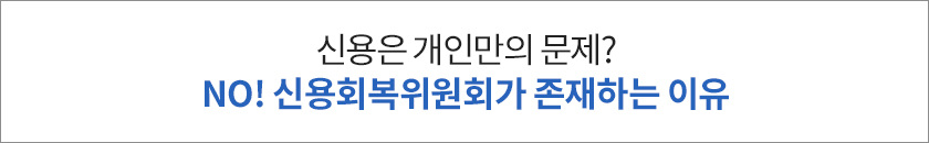 "신용회복위원회는 과중한 채무와 신용문제로 어려움을 겪고 계시는 분에게 신용회복과 경제적 재기를 지원하고 있습니다."
