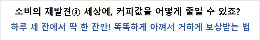 우리의 소비는 합리적이어야 한다! 소비의 재발견 세 번째 주제는 커피입니다. 커피값을 아끼려면 어떻게 해야할까요?