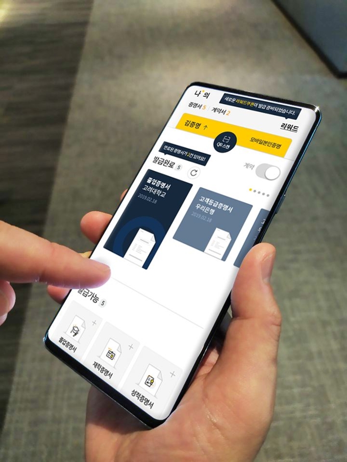 자주는 아니지만, 대학교 졸업·재학·성적증명서, 기업 재직 증명서, 근로소득 원천징수 영수증 같은 서류가 필요할 때가 있어요. 그때마다 공인인증서를 챙기고, 사이트 주소를 검색해 찾아 들어가고, 방어벽을 설치해야 증명서 하나를 출력할 수 있죠. 여기에 증명서를 메일로 보내야 하는 경우에는 스캔을 해야 하고요. 생각만해도 복잡하고 귀찮기 그지없는 이 여정. 다 됐고, 앱 하나로 모든 증명서를 관리할 수 있다면 어떨까요?