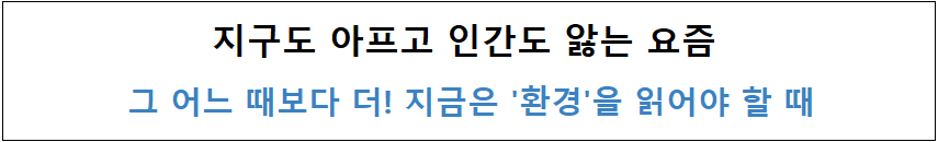 그 어느 때보다 더, ‘환경’을 생각하게 되는 요즘입니다.