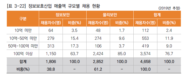 그렇다면 아래 자료들을 꼭 살펴보셔야겠습니다. 현재 우리나라 보안산업 종사자 규모, 그리고 올해 채용 인력 규모에 대한 정보거든요.