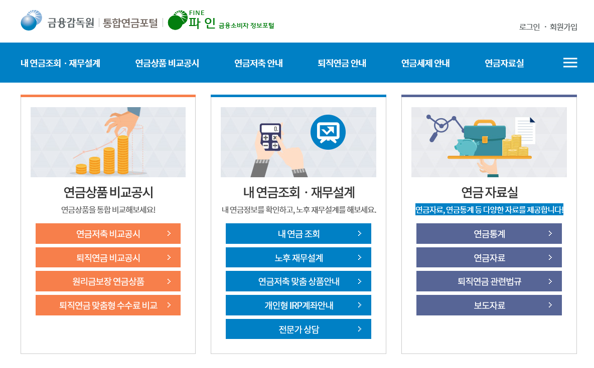 금융감독원은 여러 사이트에 산재한 연금정보를 통합해 안내하는 '통합연금포털'을 운영하고 있어요. 통합연금포털에서는 연금계좌의 가입, 이체, 해지, 연금개시 신청까지 한번에 관리할 수 있답니다. '내 연금 조회'를 통해 개인연금은 물론 국민, 공무원, 사학, 주택연금 등 6개 공적 연금기관의 연금까지 조회가 가능해요. 관련 서비스를 클릭하면 항목별 유의사항까지 안내되어 있어 신중하게 예금을 관리할 수 있습니다.