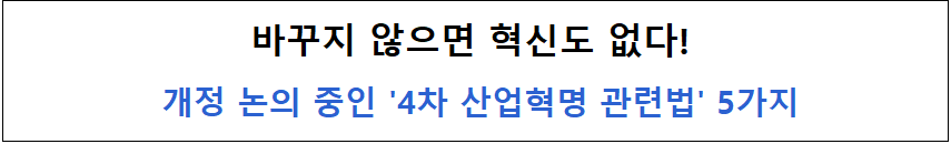 대한민국 정부가 4차 산업혁명을 위해 시행 중인 제도 중 'ICT 규제 샌드박스'라는 게 있습니다. 사이렌24에서도 한 번 소개해드렸어요! (바로 가기) ICT 관련 우수 신사업 및 신기술이 규제의 벽에 막히는 일이 없도록, 정부가 나서서 규제를 완화하고 시장 출시를 돕는 정책입니다. 이처럼 4차 산업혁명은 기존의 법 또는 규제를 적용하기엔 다소 무리가 있습니다. 기존의 것을 넘어서는 '초시대성'이야말로 4차 산업혁명의 본령이기 때문이죠.