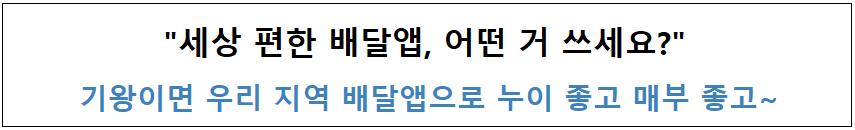 그리하여 정부와 각 지자체에서 아이디어를 냈습니다. 지역 경제를 살리면서 지역 공동체에도 기여할 방법! 착한 수수료로 지역의 소상공인을 돕는 공공 배달앱을 출시한다는 것이에요. 이미 활발하게 사용하고 있는 지역도 있던데, 어디 한번 살펴볼까요?