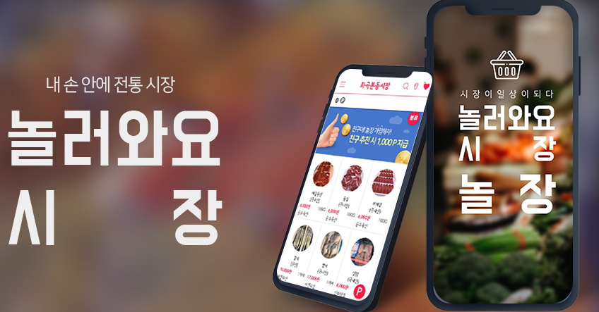 '놀러와요 시장'을 줄인 '놀장'은 광명시에서 전통시장의 현대화사업으로 구축한 배달 앱이에요. 광명시가 예산을 지원하고 시장 상인회가 전문업체에 맡겨 완성했습니다.