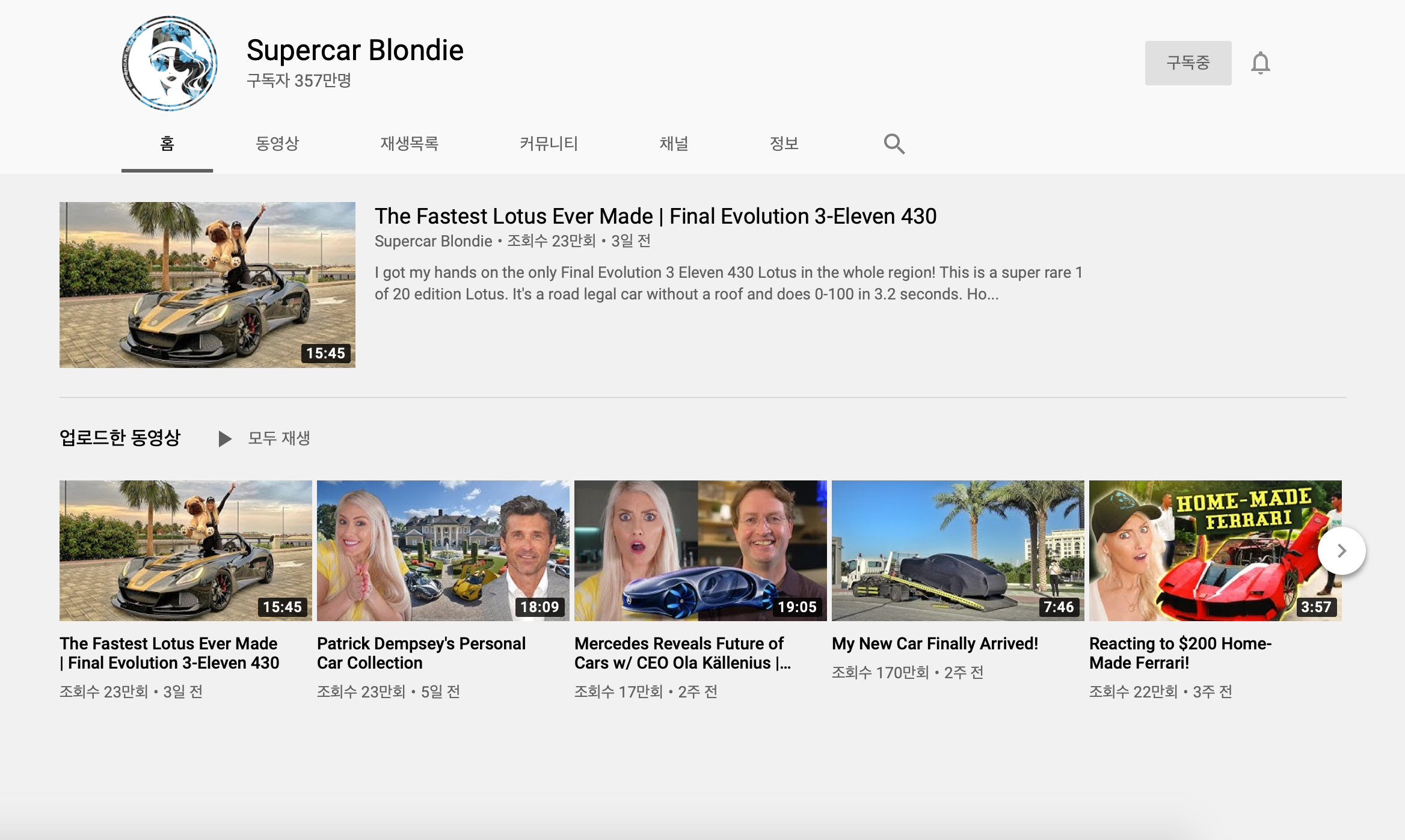 l 추천 4. 구독자 357만 명의 위용, <Supercar Blondie>