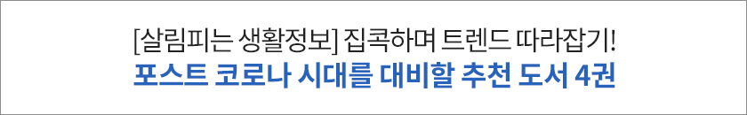 다름 아닌 '트렌드에 뒤처지면 어쩌지' 하는 걱정이죠. 많이 보고 듣고 경험할수록 사고의 폭이 넓어진다는 건 두말하면 잔소리입니다. 그런데 요즘 같은 때는 '백문이 불여일견'을 몸소 실천하기란 쉽지 않죠. 그렇다 보니 점점 나 자신만의 공간에 머물러 있는 기분, 시시각각 변하는 세상을 온몸으로 받아들이지 못하는 듯한 불안감이 엄습하기도 합니다. 특히나 시의성에 민감해야 할 직장인들이라면 더더욱 맘이 편치 않을 거예요. 그래서 준비했습니다. '집콕' 중에도 트렌드를 따라잡게 해줄 국내외 석학들의 최신 저서 모음!