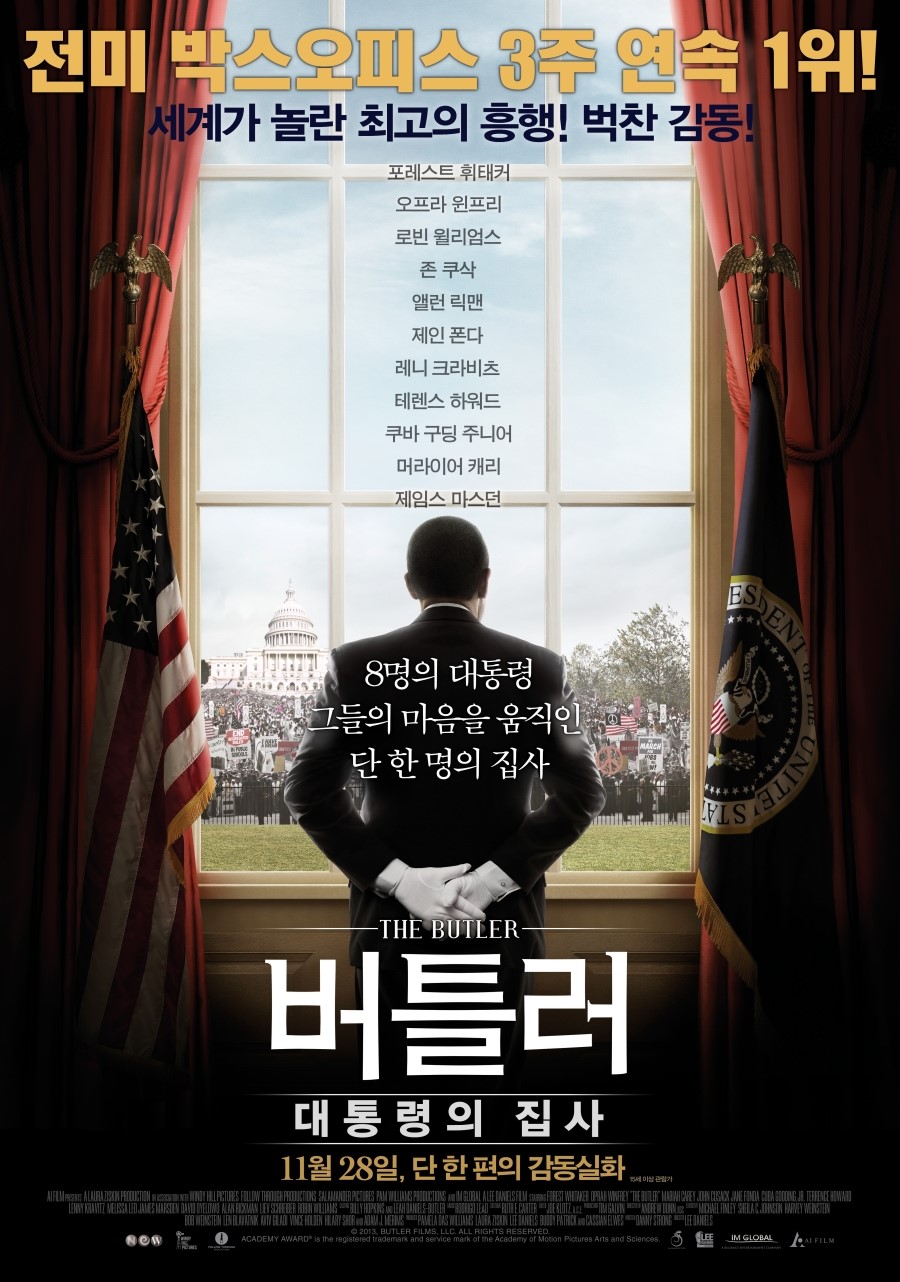 이 영화는 미국 대통령을 직접적으로 다루진 않았습니다. 백악관 처처의 실무자들을 무척 생생히 그렸죠. <버틀러: 대통령의 집사>라는 제목처럼, 34년 동안 백악관에서 근무하며 대통령 8명을 수행한 실존 인물 유진 앨런의 삶을 극화한 작품이에요.