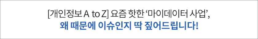'마이데이터 사업'이 요즘 핫이슈인 이유를 간략히 짚어봤습니다. 제4차산업혁명 시대, 빅데이터 시대에 걸맞은 신사업과 신서비스, 마이데이터 시스템을 통해 더욱 다각화될 듯한데요. 물론 아직은 시범사업 단계라 해결 과제도 적잖습니다. 일례로, 사용자가 B 기업과 거래한 이력(데이터)을 제3자인 A 기업이 열람 및 활용한다는 건, 아무리 사용자 동의가 있다 해도 A와 B 양자의 협의가 없다면 불가능하겠죠. 이렇듯 기업 간 협조가 원활할 때 마이데이터 사업도 융성할 수 있겠죠. 개인정보 유출 문제도 불거질 수 있을 것이고요.