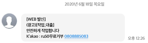※ 대출취급을 가장한 대포통장 모집 실제 문자메시지