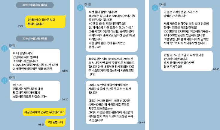 3. SNS, 알바사이트 등에서 구매대행, 환전 명목 등으로 통장 대여를 유도합니다.