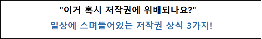 그렇습니다. 우리는 수많은 저작물들과 함께 생활합니다. 출퇴근길에 스마트폰으로 이용하는 음원 스트리밍 서비스, 굿즈숍에서 만나는 다종다양한 캐릭터 상품, 유명인들이 모델로 출연한 각종 온라인 광고 영상, 마트 진열대의 상품 패키지(이를테면 샴푸와 염색약)에 붙은 연예인 사진 등등. 이미 알고 계셨겠지만 이 모든 것은 이른바 '저작물'입니다. 이렇듯 우리 일상과 저작물은 대단히 긴밀하게 연결돼 있어요. 그만큼 우리가 지켜야 할 저작권의 수와 종류가 적지 않다는 뜻이기도 합니다. 이번 시간엔 일상생활과 밀접한 저작권 상식, 딱 세 가지만 알아보도록 해요!