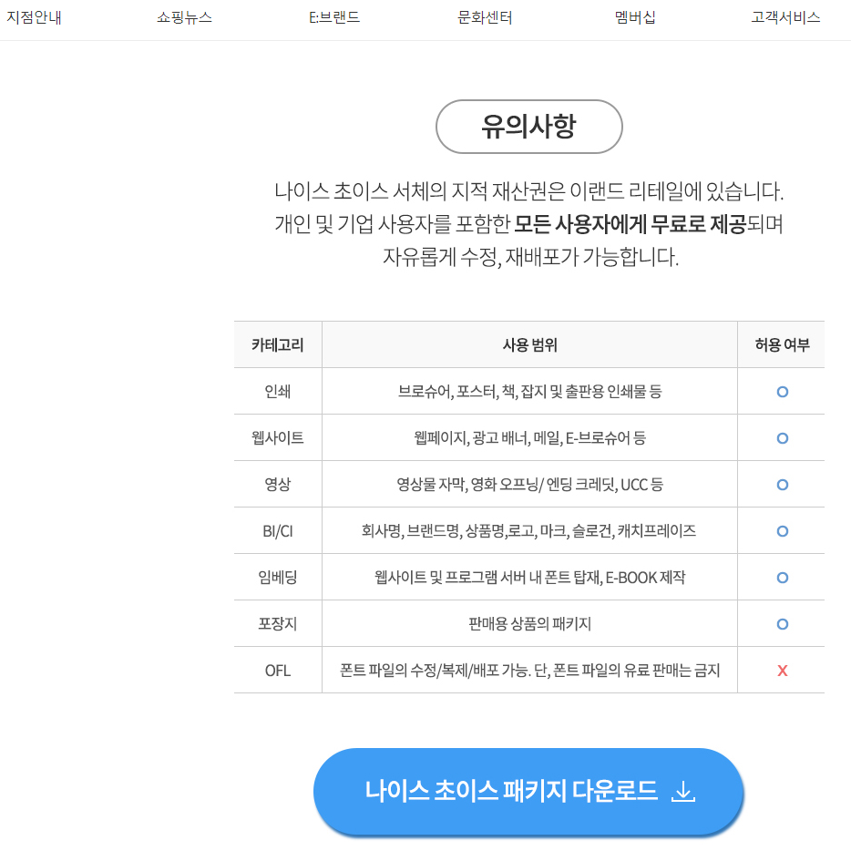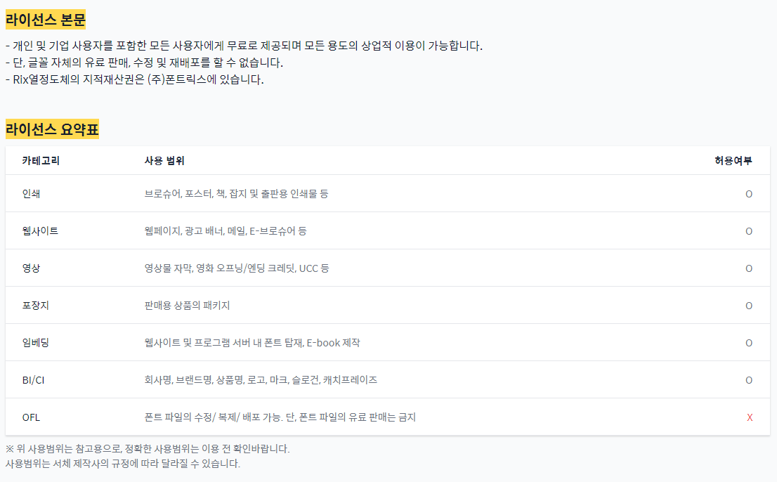 ※ 무료 폰트 사이트 내 라이선스 확인 경로