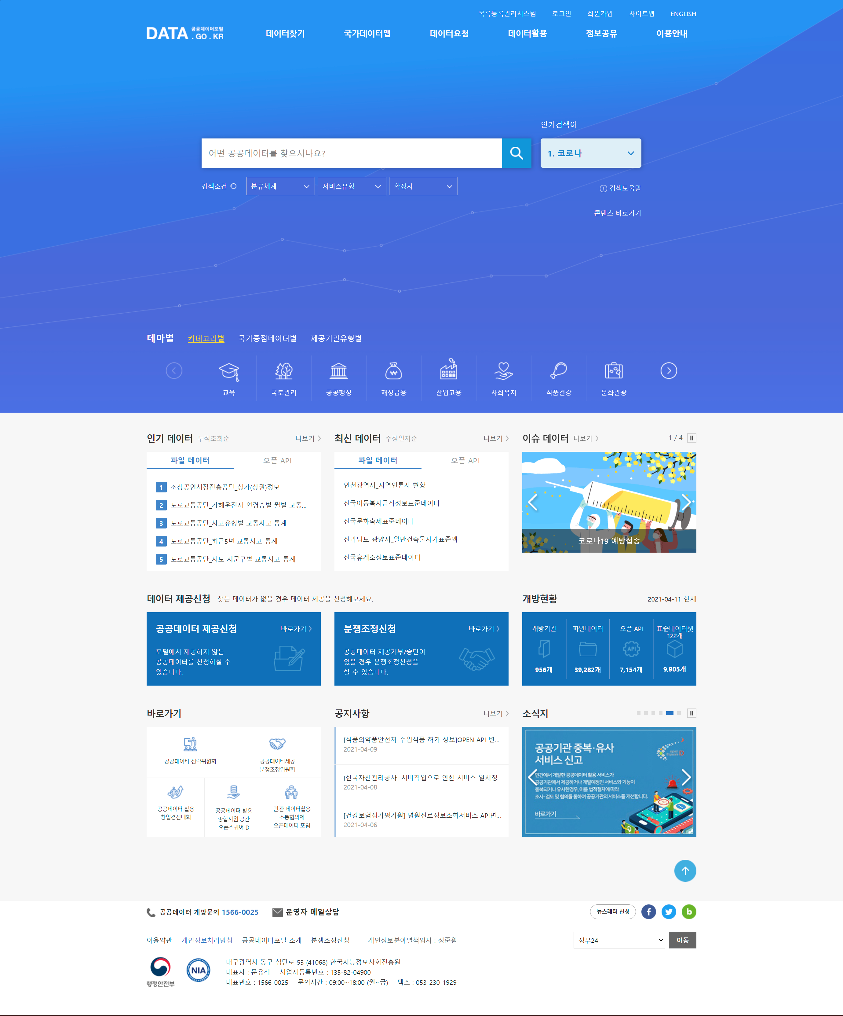 국민 모두는 언제든 공공데이터포털에 접속해 16개 카테고리 -교육·국토관리·공공행정·재정금융·산업고용·사회복지·식품건강·문화관광·보건의료·재난안전·교통물류·환경기상·과학기술·농축수산·통일외교안보·법률- 의 공공데이터를 손쉽게 검색하고 확인할 수 있는데요. 이로써 우리는 공공 영역의 다종다양한 수치 정보를 제공받고, 이런저런 공공 정책들의 실효성과 운영 현황을 구체적으로 파악할 수 있지요. 즉, 실시간 정책 모니터링이 가능한 겁니다.