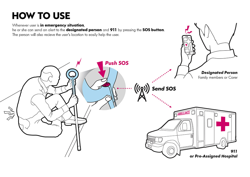 마사이족은 아프리카 많은 부족 중에서도 우리에게 참 많이 알려졌어요. 바로 '건강의 대명사'로 말이지요. 한참 전에는 '마사이족 신발'까지 유행했을 정도니까요. 지금도 원시사회의 모습을 간직하고 있는 마사이족의 경제적 도움을 위해 고안된 디자인 제품이 있습니다. 이름하여 '마사이 스마트 지팡이(Maasai Smart Cane)'입니다. 이 지팡이는 마사이 부족이 사자와 싸움을 할 때 사용하는 나무로 만든 스마트 지팡이인데요, 지팡이 손잡이 안에 GPS 장치가 내장돼 있어 지팡이를 사용하는 사람이 응급상황이 발생했을 때 지팡이 중앙의 SOS 버튼을 누르면 사전에 지정된 보호자와 응급구조대에게 신호를 전송하는 방식입니다.