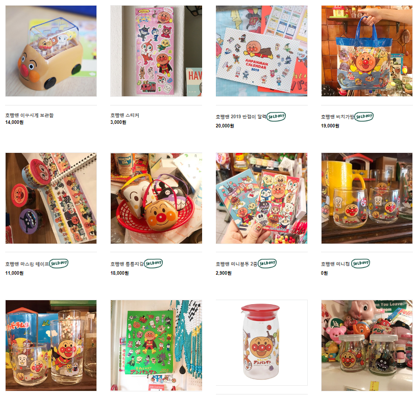 온갖 아이템이 오밀조밀하게 잘 정돈되어 있는 모습마저 사랑스러워요. 쓱~ 둘러보니 스누피, 호빵맨, 심슨, 미피, 도라에몽 등 익숙한 캐릭터가 눈에 보였습니다. 세상에! 추억의 호빵맨을 어떻게 그냥 지나치겠어요? 사무실에 가져다 놓으면 이런 감성이 안 나온다는 걸 아주 잘 알고 있지만, 머리와 손은 따로 놉니다. 수바코는 일본캐릭터를 주로 판매하고 있어서 디즈니파에게는 건질 물건이 별로 없을 수도 있겠네요.