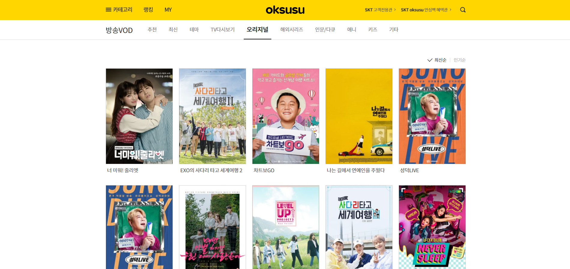 VOD와 클립, 인물(연예인, 스포츠 스타 등)·주제별 큐레이션 등 다양한 방송 프로그램들을 다시 보기, 맛보기 할 수 있습니다. 옥수수는 자체 제작한 '옥수수 오리지널' 콘텐츠들도 제공합니다.