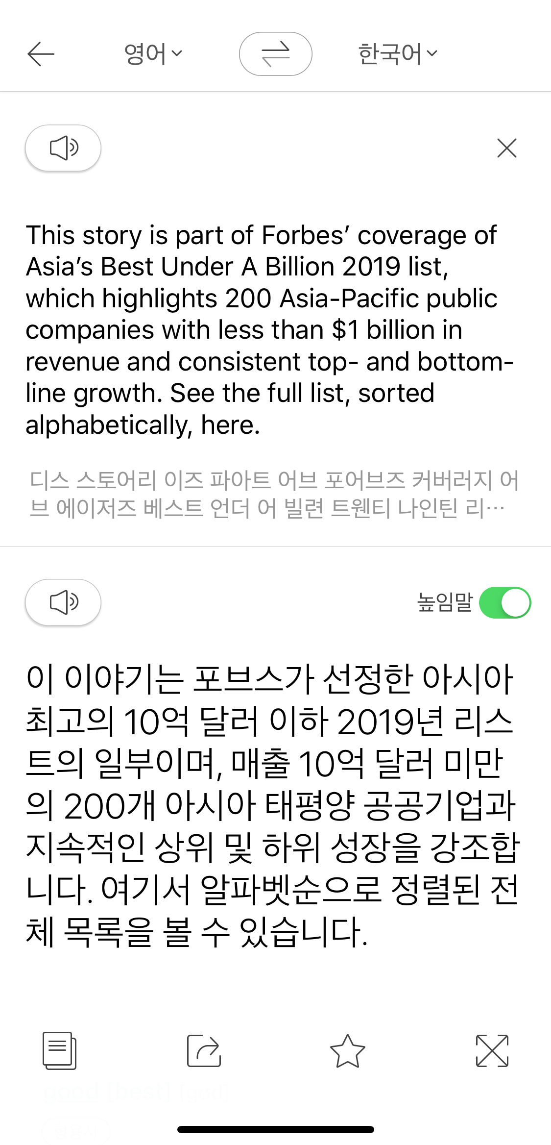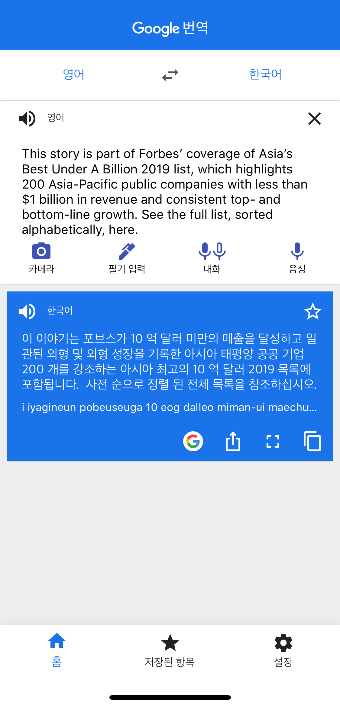 경제 전문지 『포브스(Forbes)』의 영문 기사 한 단락을 구글 번역에 입력해봤어요.