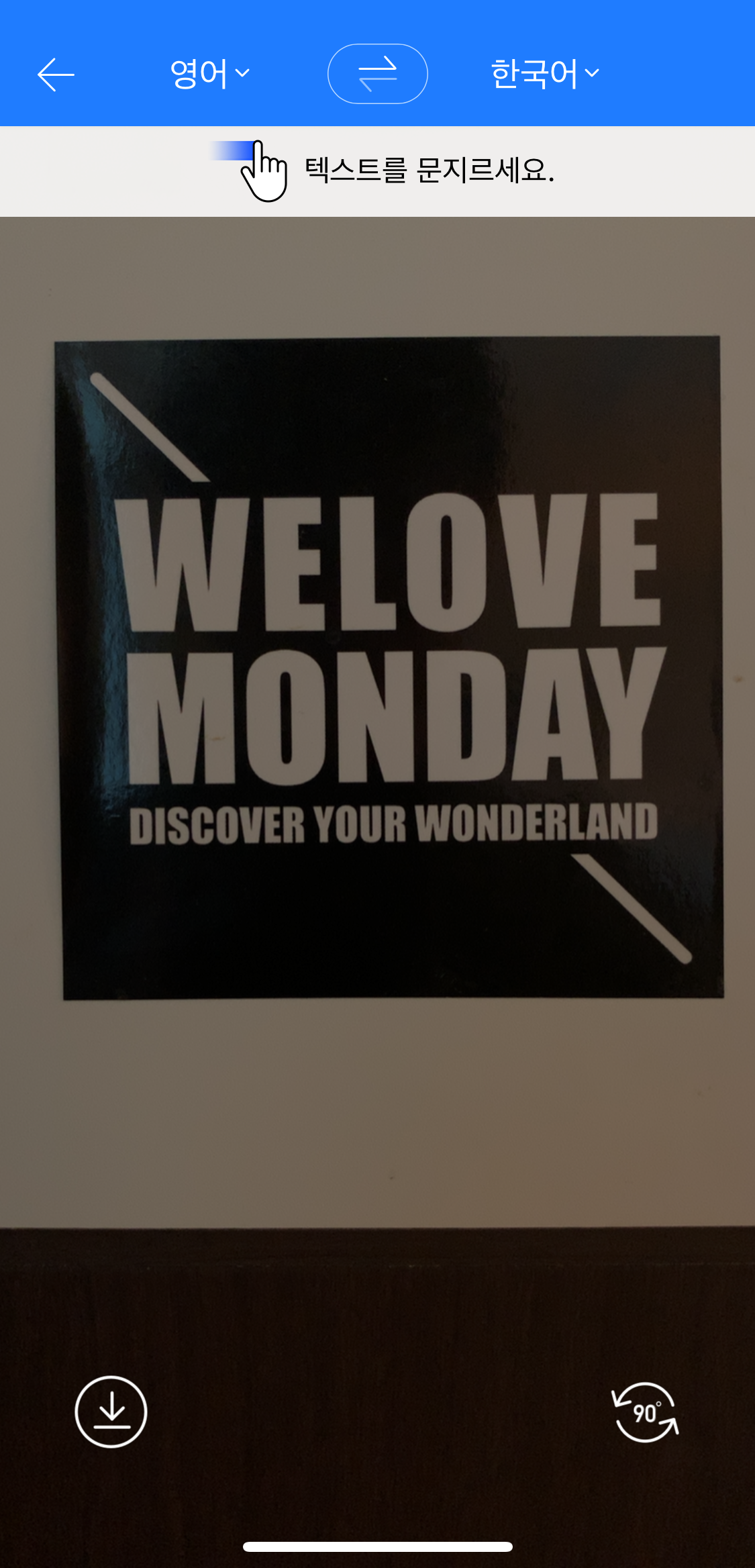 OCR 번역 기능을 사용해봤습니다. 구글 번역과 달리, 네이버 파파고는 사용자가 알고 싶은 부분을 손가락으로 문지르면 해당 단어(문장)의 번역문이 활성화됩니다.
