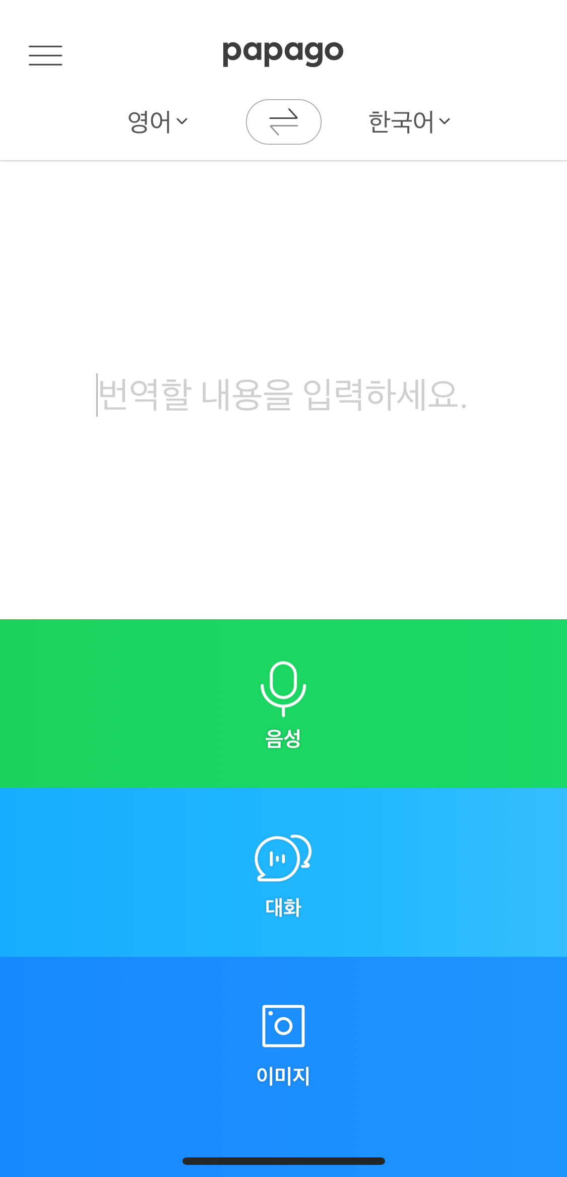 텍스트 번역, 음성, 대화, 이미지 기능으로 구성돼 있습니다.
