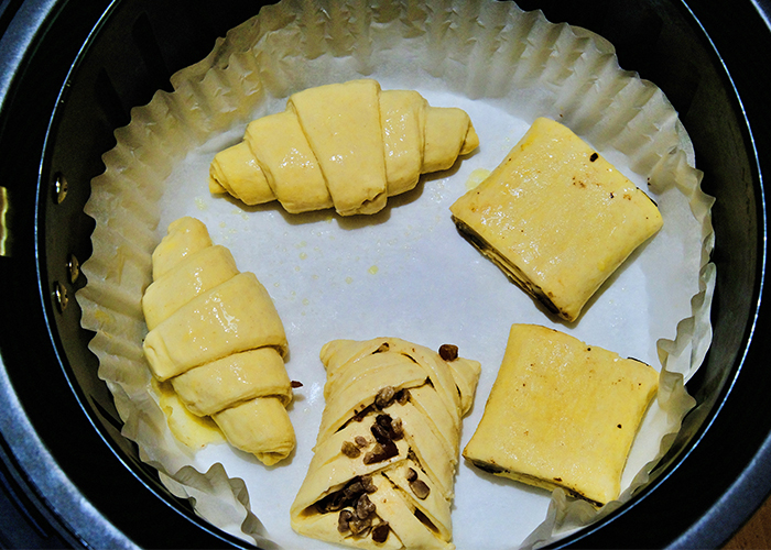 에어프라이어 용기 안에 반죽을 넣을 때는 적당히 간격을 두는 게 좋아요.