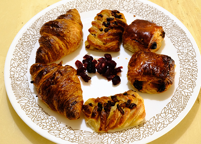 왼쪽부터 '미니 메이플 피칸 파이', '뺑오쇼콜라', '미니 크루아상'입니다.