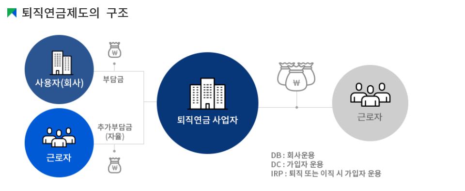 * 사용자가 근로자 개별 계좌에 부담금을 정기적으로 납입하면, 근로자가 직접 적립금을 운용하며 근로자 본인의 추가 부담금 납입도 가능