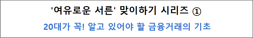 [금융정보 A to Z] '여유로운 서른' 맞이하기 시리즈 ① 20대가 꼭! 알아야 할 금융거래의 기초