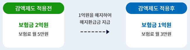 · 당초 보험계약의 보험기간과 보험금 지급조건 등은 변경되지 않으나 보장 금액은 줄어들게 됩니다.